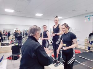Naisten 87 kiloisissa Noora Pylkkänen nosti perustuloksen 88kg. Noora myös debytoi miesten ryhmässä tuomarina.