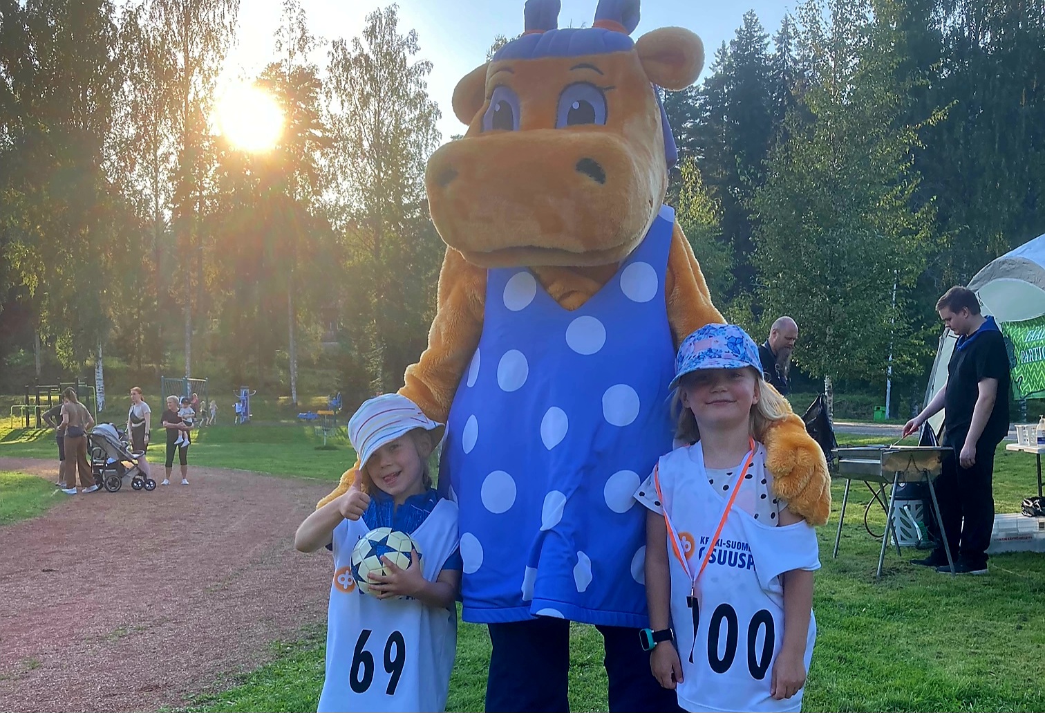 Hippo-kisoissa riitti vipinää torstaina 5.9. Vihtavuoren liikuntapuistossa, kun 200 lasta osallistui pallonheitto- ja juoksukilpailuihin. Hanna Hippo-maskottikin oli iloinen, kun lapset ehtivät leikittämään häntä kisailun lomassa. Kaikki osallistujat palkittiin hienoilla Hippo-osallistujamitaleilla, ja sarjoittain kolme parasta kulta-, hopea- ja pronssimitaleilla. Kiitos kaikille mukana olleille ja Hippo-kisojen toimitsijoille sekä OP Keski-Suomi! Tulokset Juoksu 20/60 metriä 2024 tulokset Pallonheitto 2024 tulokset — Kuvassa Miina Huikko ja Aino Korja Hanna-Hipon halauksessa.